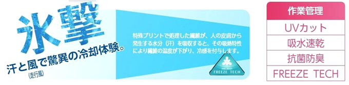 水分(汗)を利用して瞬間冷却する特殊プリント繊維を採用!