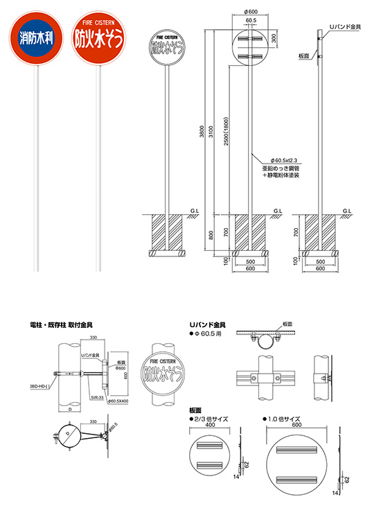 消防標識 「消火栓」「防火水そう」 「消防水利」 「消防用通路」 など