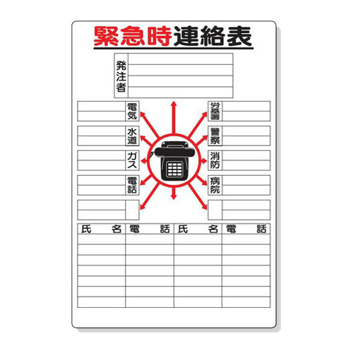 組織表 作業宿舎表示 緊急時連絡表 安全施工サイクル表