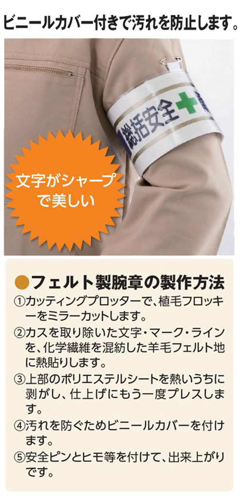フェルト腕章  衛生管理者・責任者  安全当番・安全パトロール  作業主任者・工事責任者  合図者・運転者 など