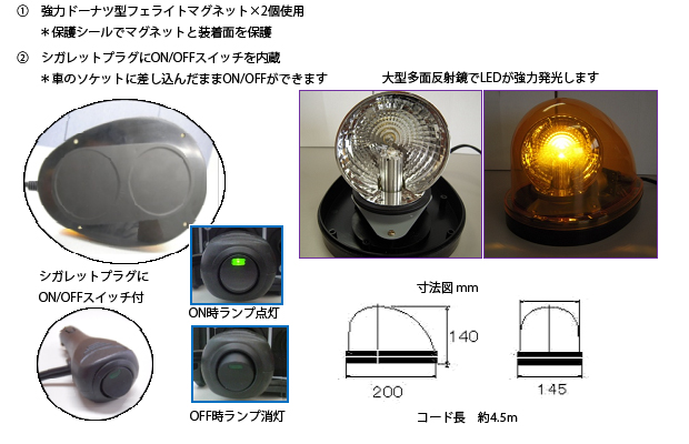 DC12V~DC24V | 青840カンデラ | 各色 3W ハイパワーLED | 約0.9kg | グローブ ポリカーボネード ベース部 ABS | 約4.5m |