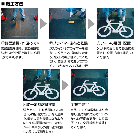 車道に設置可能なシート標示材で自転車レーンをわかりやすく案内します。