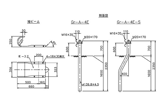 B種 | Gr-B-4E | 3.2×350×4,330 | 4.5×Φ114.3×2,200 |