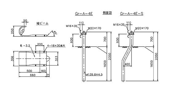 A種 | Gr-A-4E | 4.0×350×4,330 | 4.5×Φ139.8×2,350 |