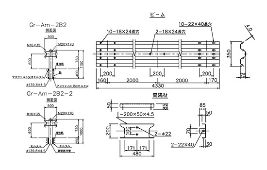 A種 | Gr-Am-2B2 | 4.0×350×4,330 | 4.5×Φ114.3×1,150 | |