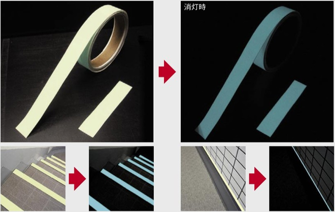 高輝度蓄光アルミステップ 目印シール・チェイン ドアノブ用蓄光リング 照度計 高輝度蓄光塗料